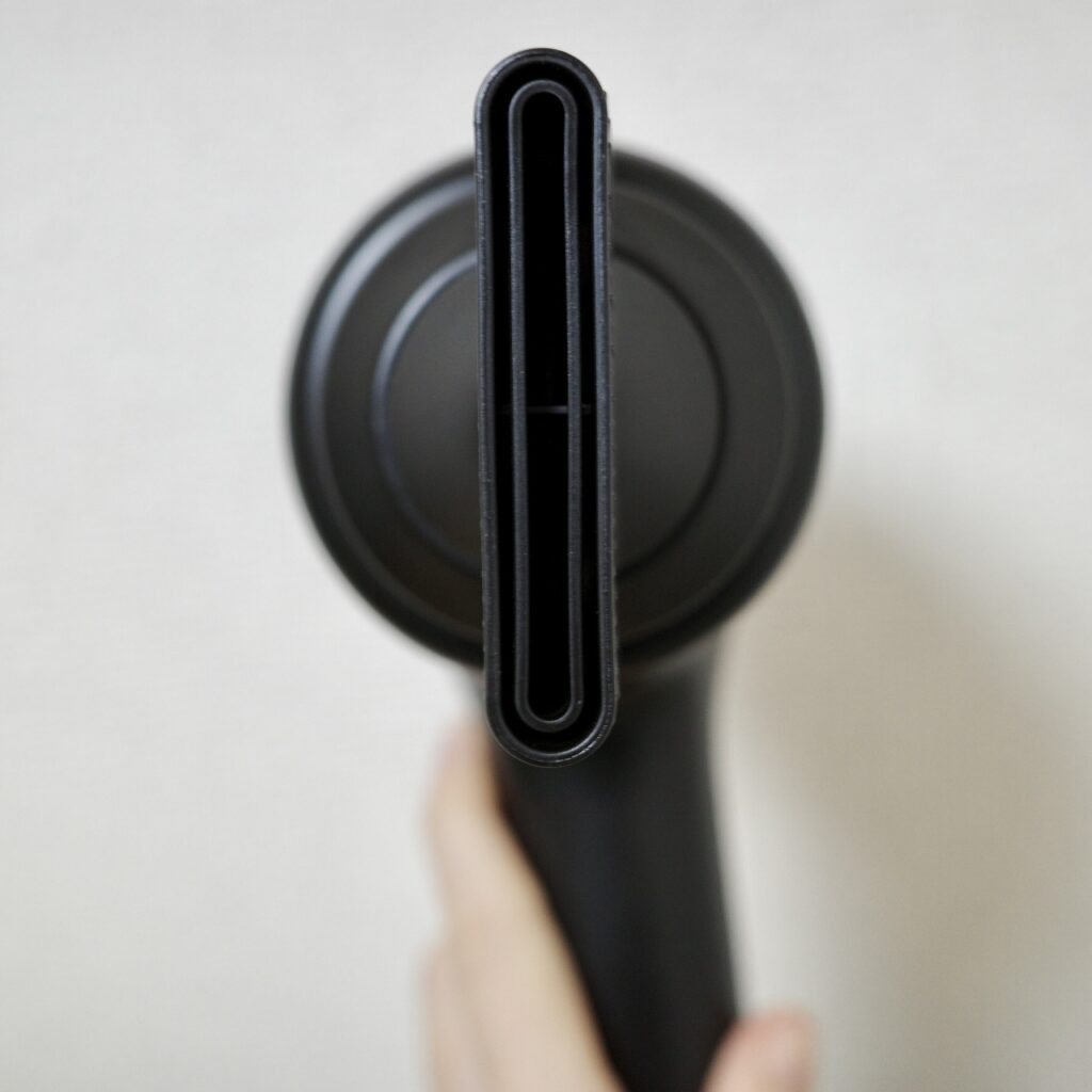 そして、肝心の機能面ですが、見た目のコンパクトさからは想像できないほどのパワフルな風量に圧倒されました。 これまでは熱で無理やり乾かしていた感覚がありましたが、これは「風の力」で水分を飛ばしてくれるような印象です。そのおかげで、ドライヤーを当てている時間が以前より明らかに短くなりました。早く乾くということは、それだけ熱による髪への負担も減らせるということ。毎日のことなので、この積み重ねは大きいと感じます。